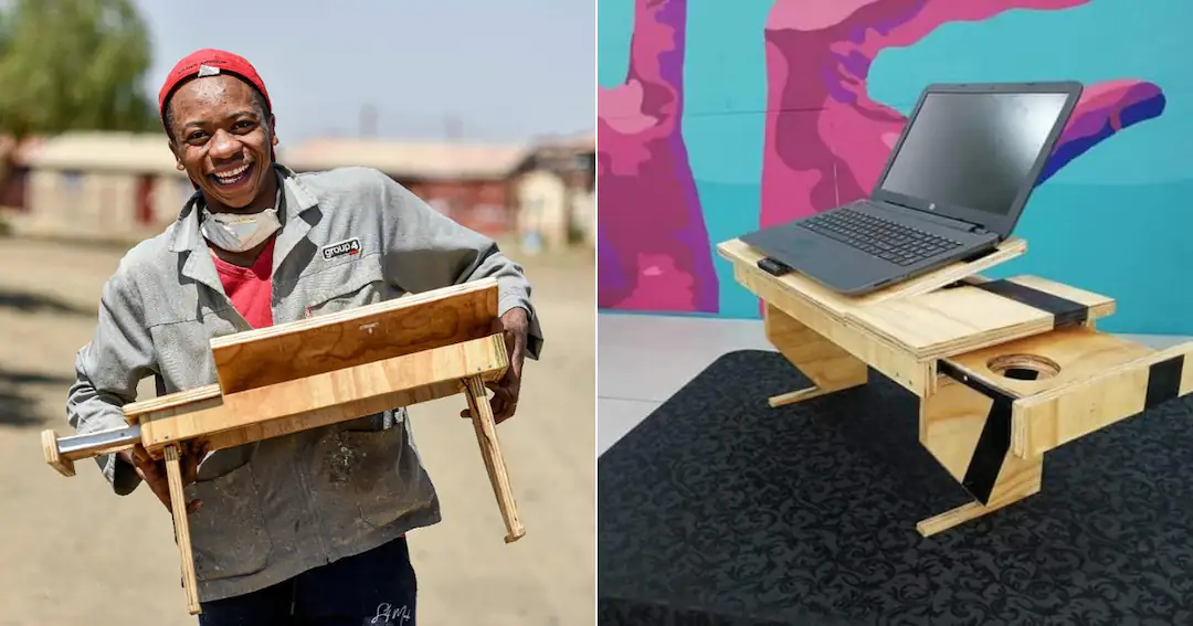 5 OCT 2021. - Thabang Shinners, 22, is a self-taught carpenter who sells foldable laptop tables and other wooden products after learning his craft by watching YouTube tutorials.